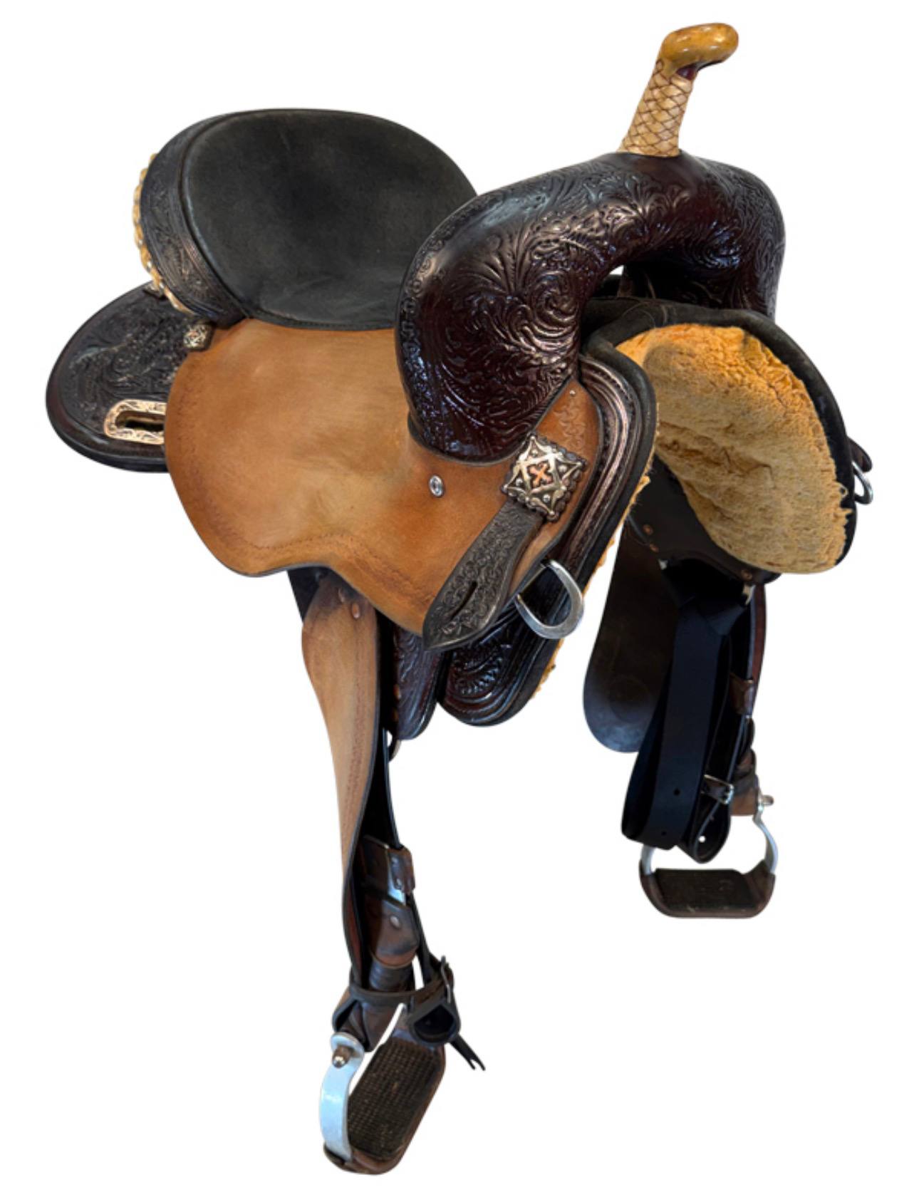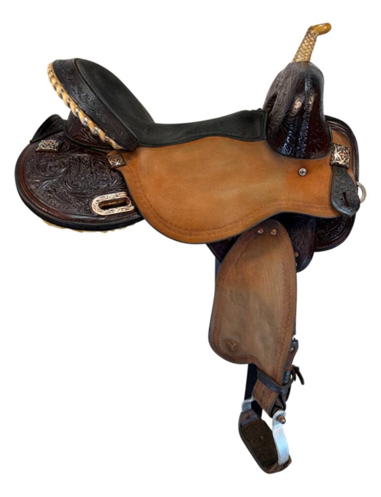 - 15.5″ deep secure seat with forward swell for barrel racing stability