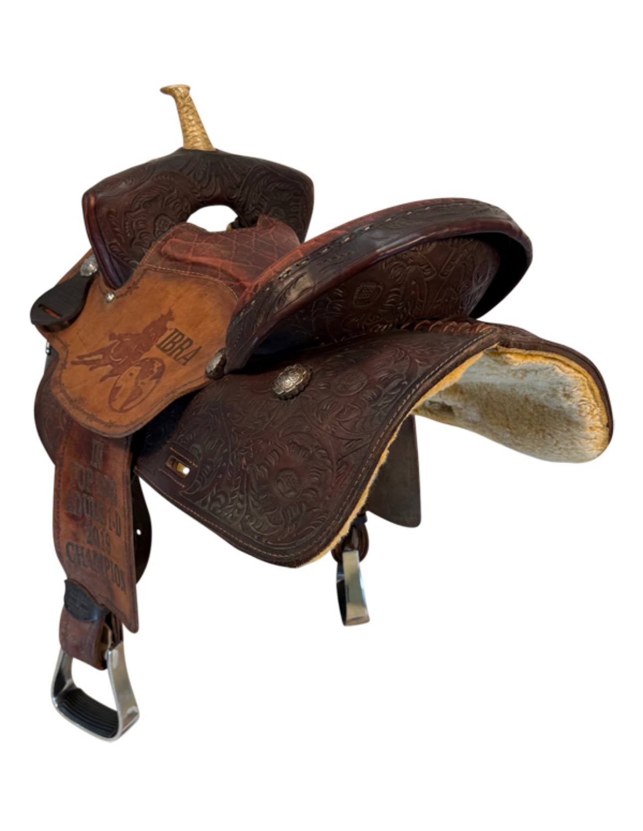 15” Used Pro Rider Barrel Saddle with a wide tree. Durable, comfortable, and well-balanced—ideal for broader horses and dependable barrel racing performance.