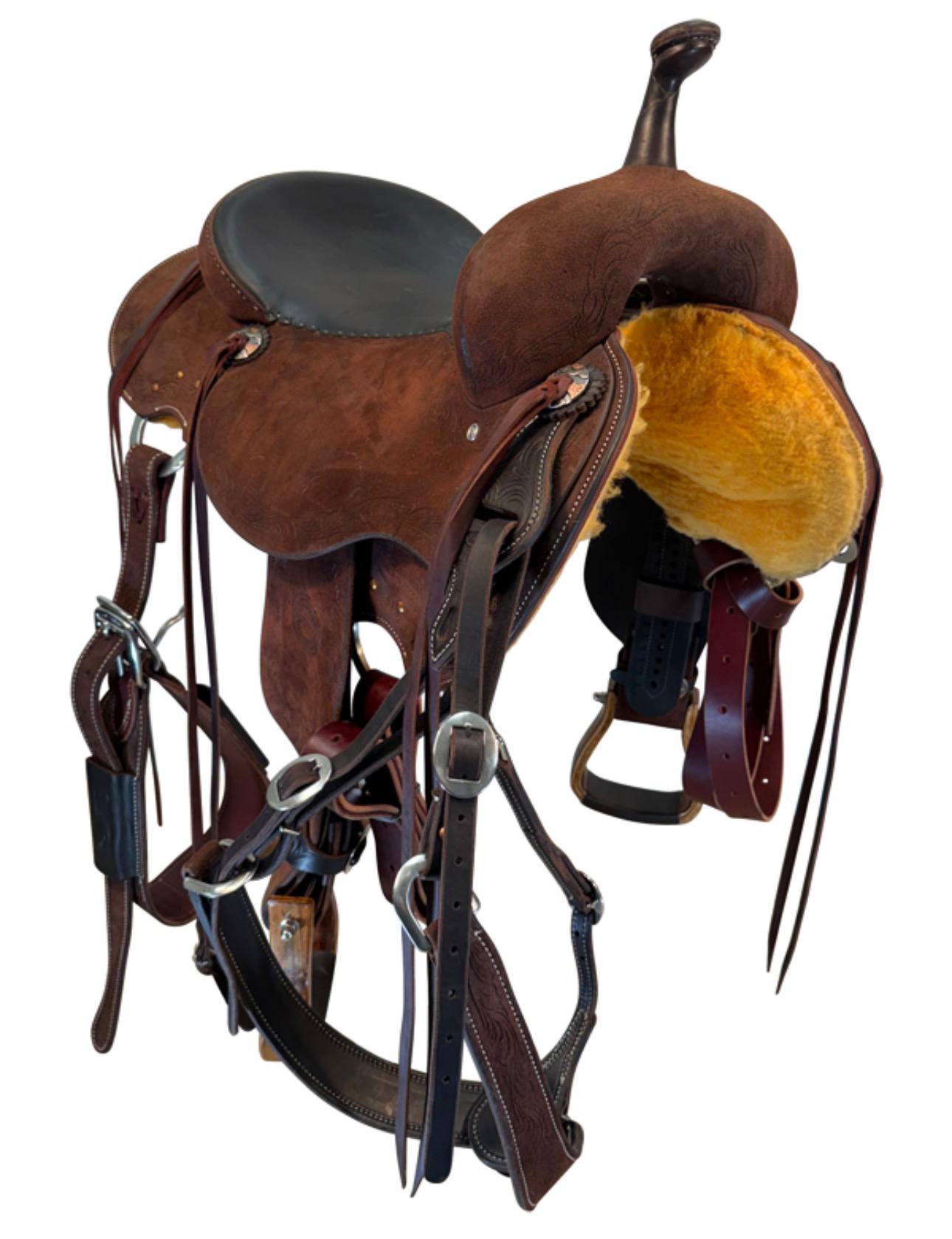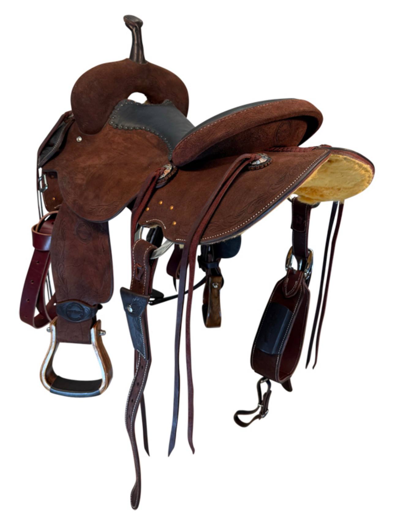 Featuring a 17-inch seat, it offers a roomy yet secure riding position, providing stability and comfort during long sessions and intense cutting work. The wide tree is ideal for broader horses, ensuring proper fit, even weight distribution, and enhanced comfort while allowing the horse to move freely.