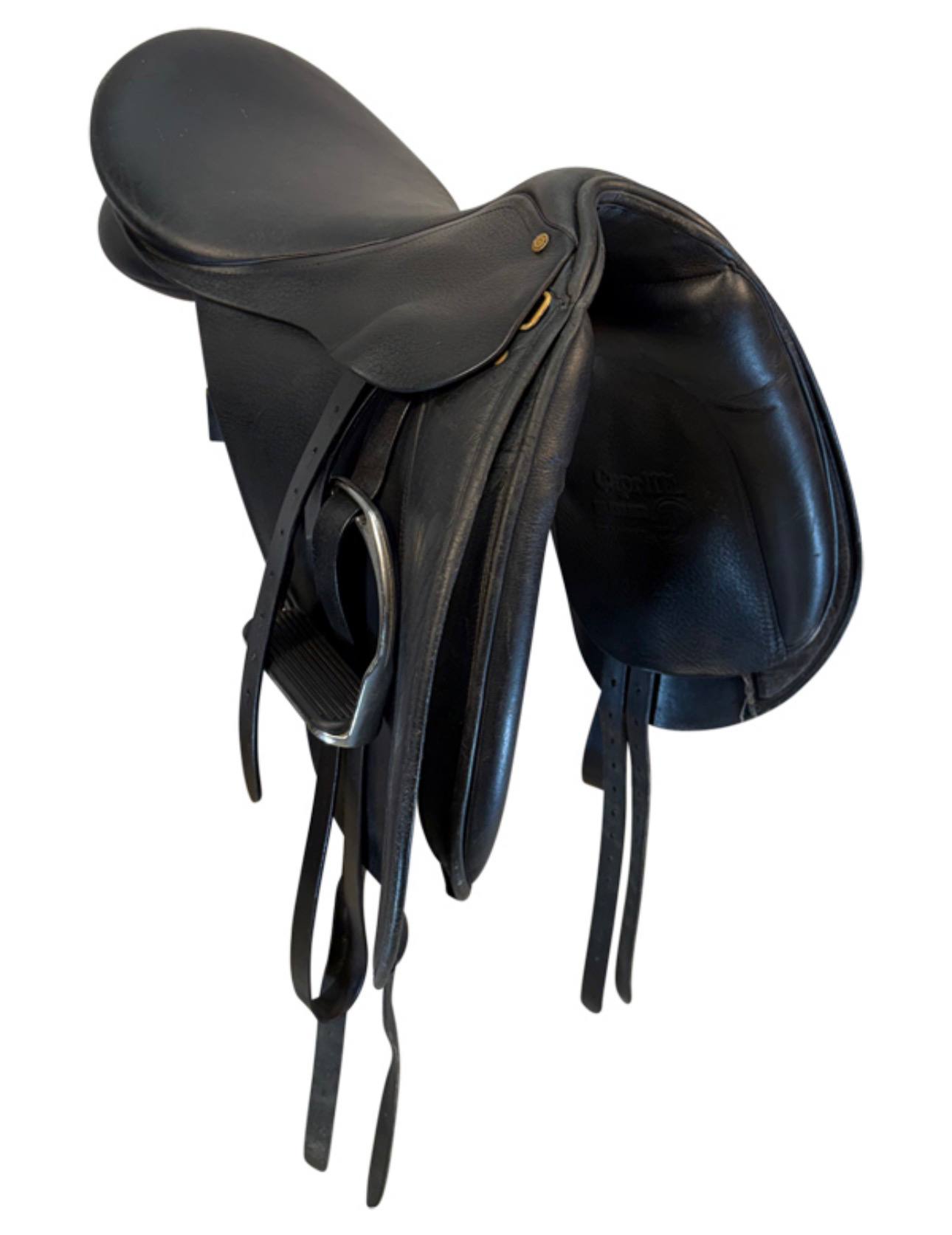A premium used dressage saddle that blends timeless elegance with modern performance technology.