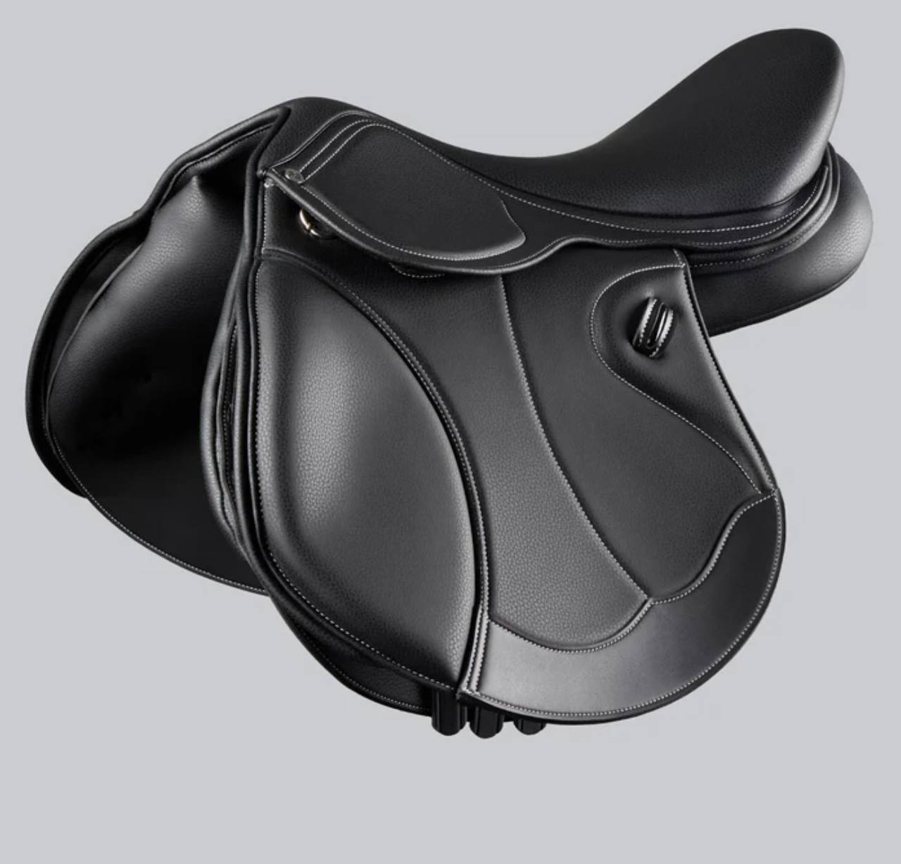 A lightweight and durable jump saddle made from high-quality synthetic material. Designed for comfort and stability, with supportive knee rolls and a sleek black finish—easy to maintain and ideal for everyday training or competition.