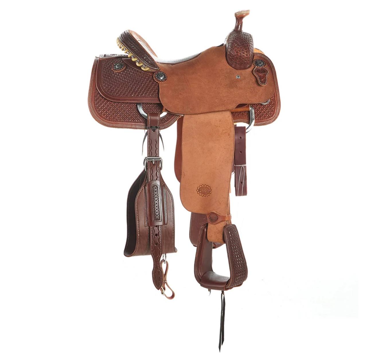 The NRS Competitor’s Competitor Series Heavy Oil ½ Breed Waffle Team Roping Saddle is engineered for serious ropers who want dependable performance, comfort, and all-day durability. Featuring a rugged heavy oil finish combined with waffle patterned roughout leather, this saddle delivers excellent grip and a classic western look. Its ½ breed design brings a lower profile and closer feel to the horse while still offering the strength and support needed for both header and heeler work. Built with quality materials and expert craftsmanship, this saddle provides exceptional stability during tight turns and hard runs—making it a top choice for competitive team roping, ranch work, and heavy use.