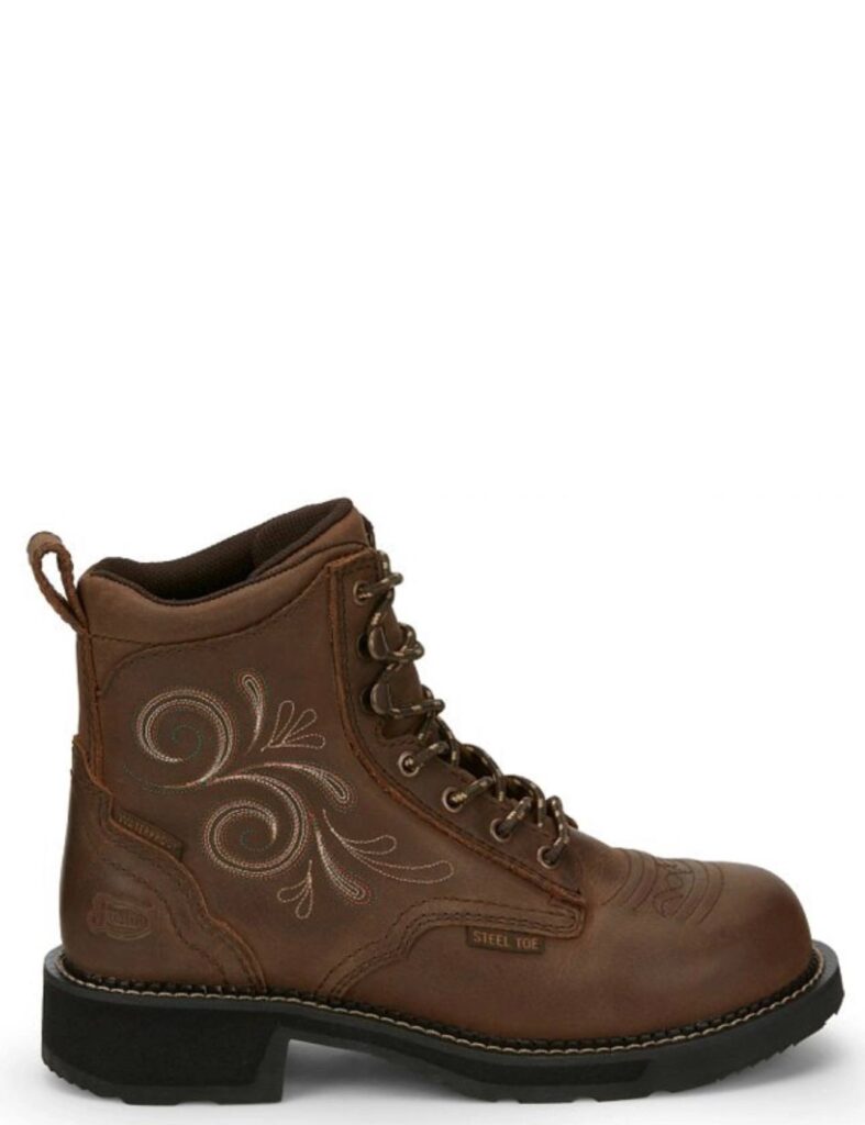 Whether you’re working on the ranch, in the barn, at the warehouse, or need a reliable steel toe boot for daily duties, the Justin Katerina Steel Toe Boot (GY985) delivers the protection, comfort, and authentic western look that working women demand. It’s a practical yet attractive boot that combines safety with Justin’s legendary quality.