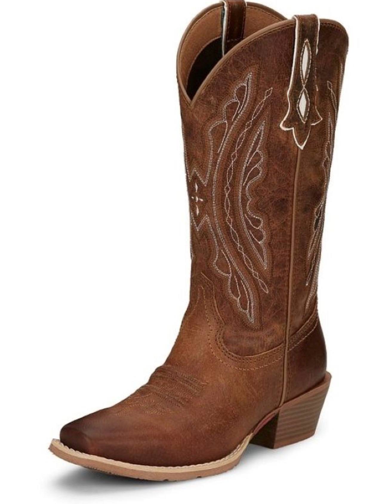 A timeless women’s 12-inch western boot from Justin — classic style with all-day comfort.