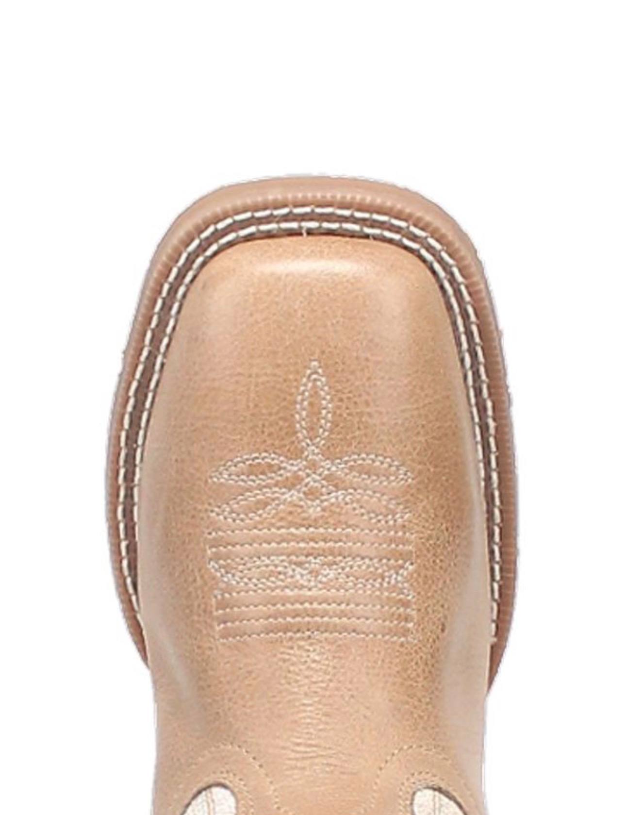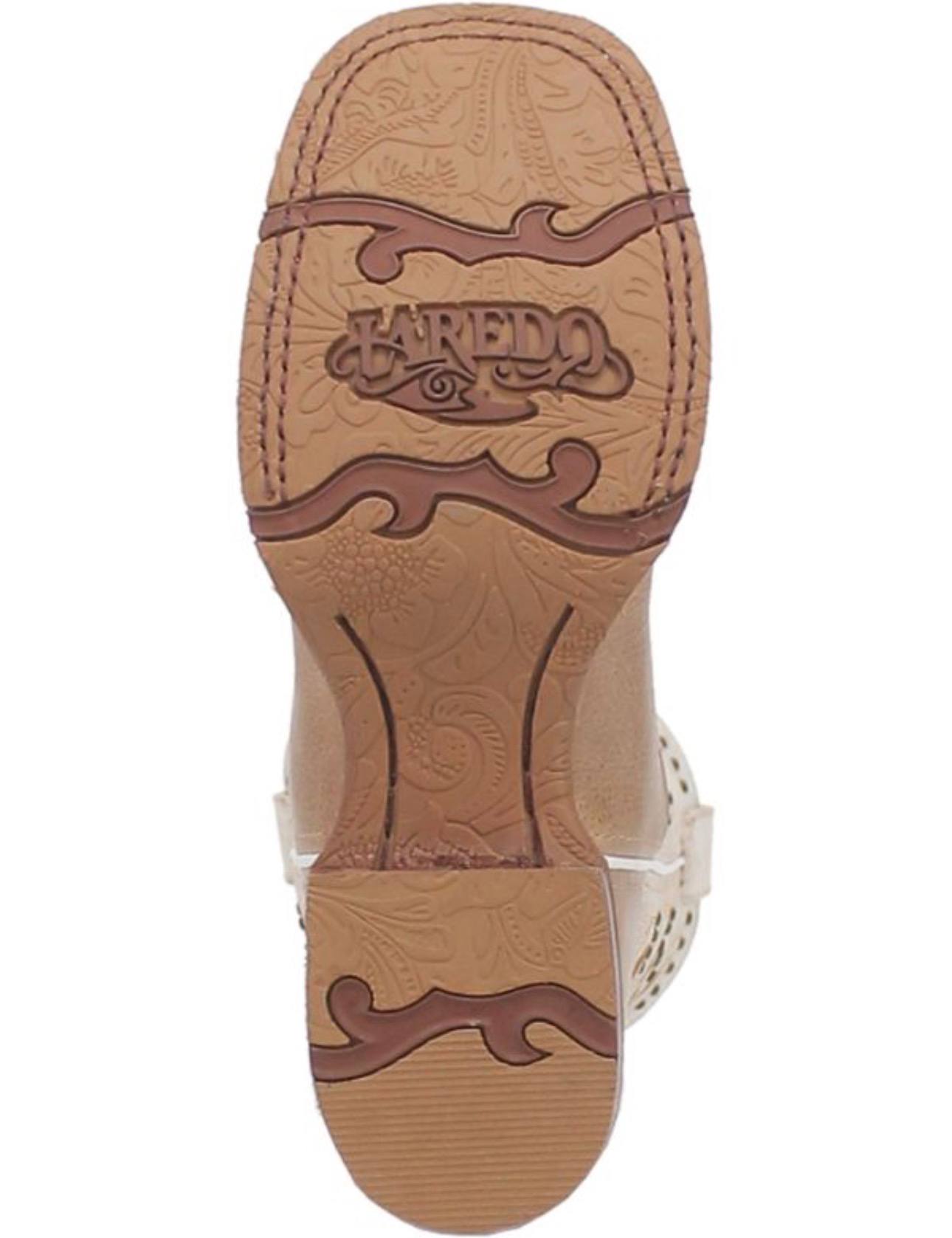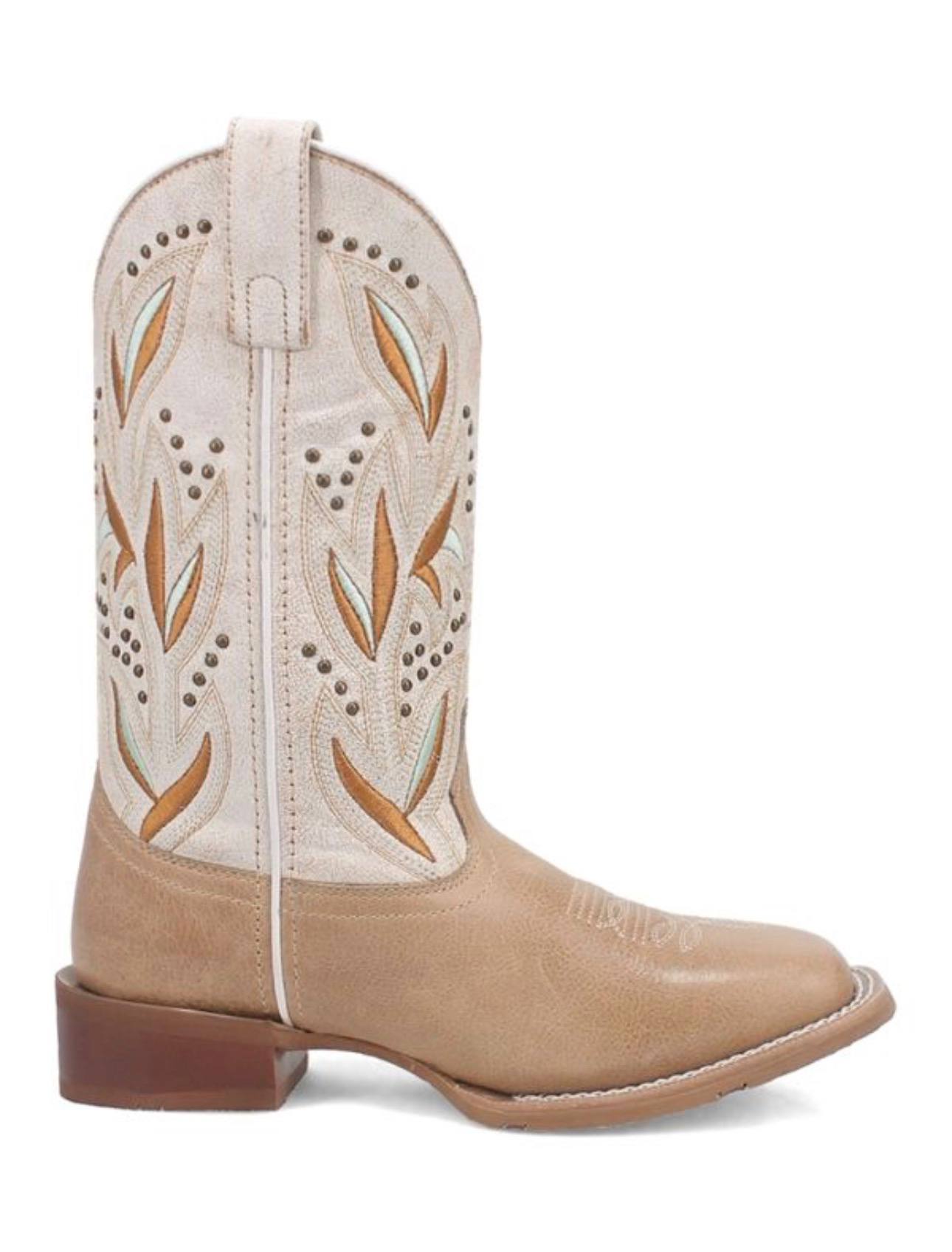 The Women’s Laredo Lydia Sand Leather Boot (style 5603) is the perfect blend of authentic Western flair and everyday comfort. Crafted from soft genuine leather in a warm sand/tan tone with contrasting white shaft accents, this boot showcases eye-catching Western embroidery and decorative studs along the 11-inch shaft for a bold, feminine look.